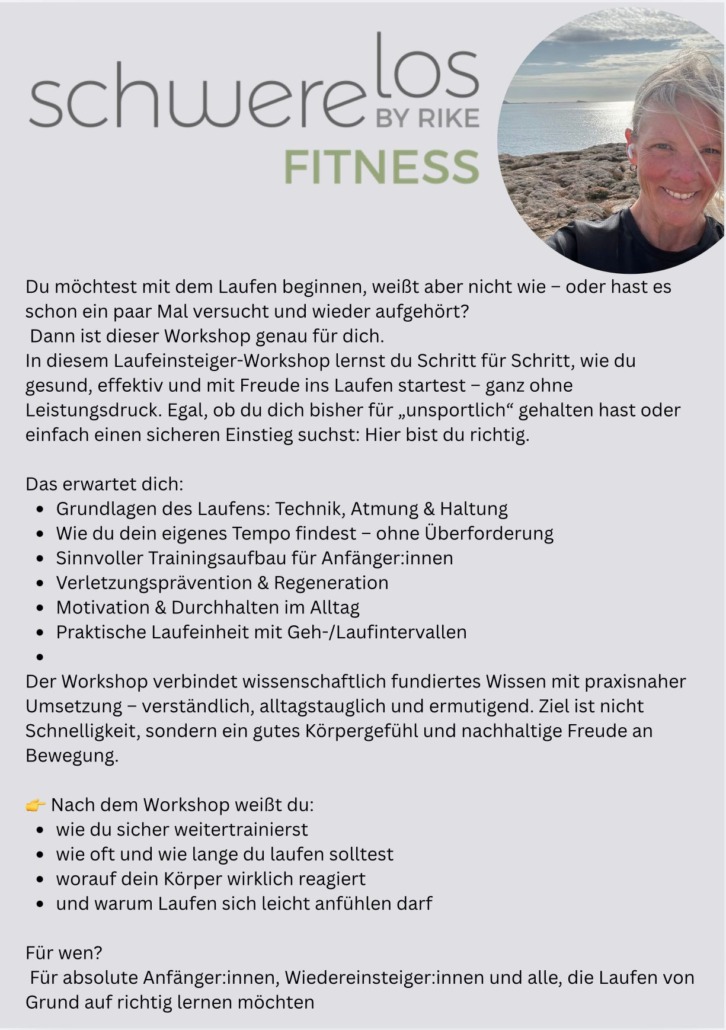 Laufeinsteiger und Halbmarathon-Vorbereitungs-Workshop mit unserer Partnerin Rike Raesch.